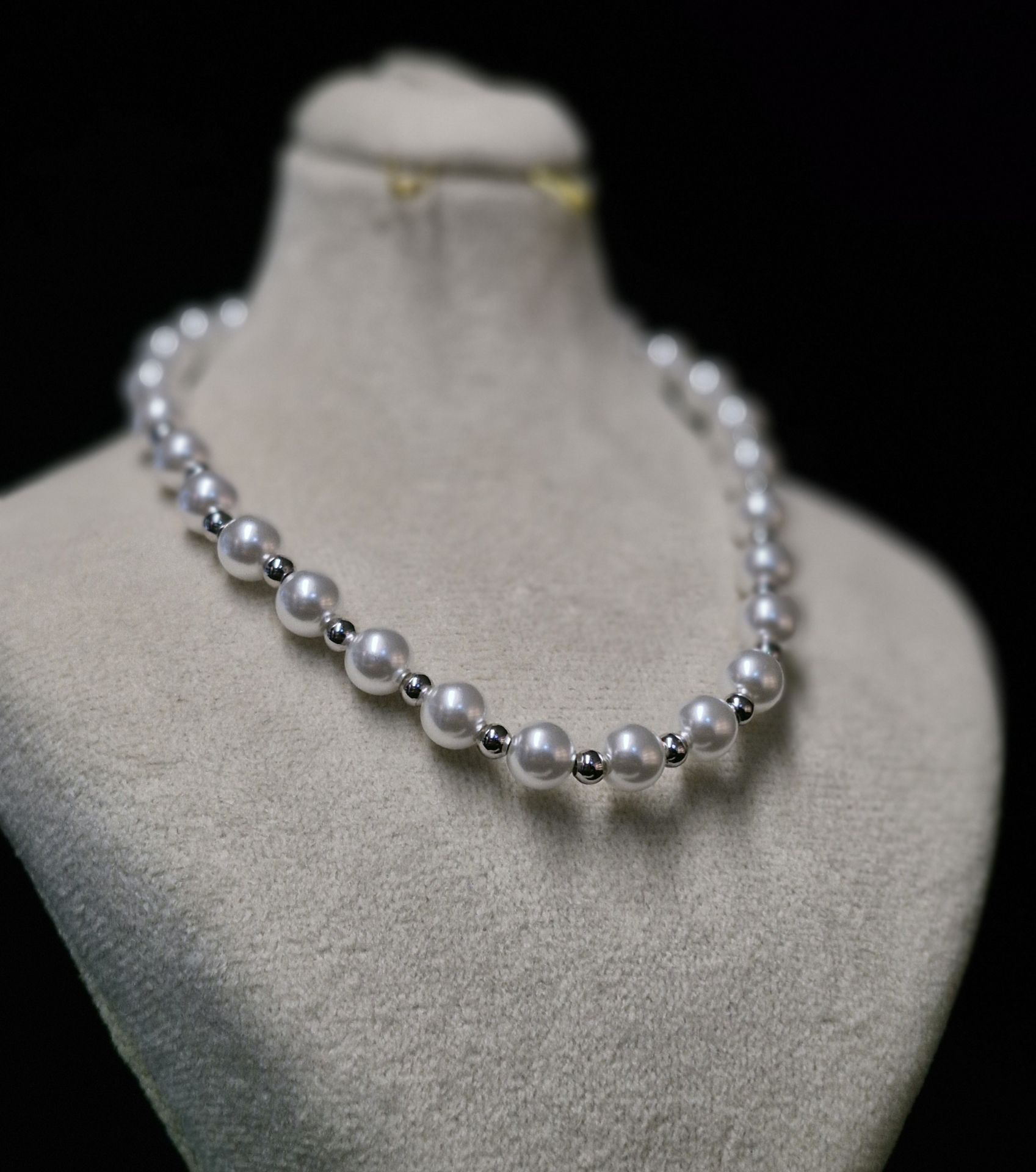 گردنبند زنانه مرواریدی با مهره استیل رنگ ثابت