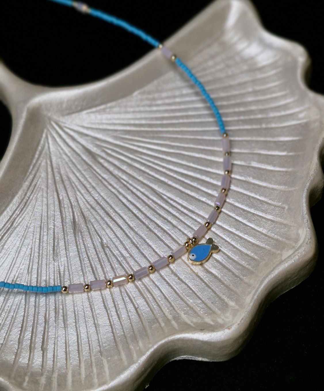 گردنبند زنانه منجوق با پلاک ماهی آبی