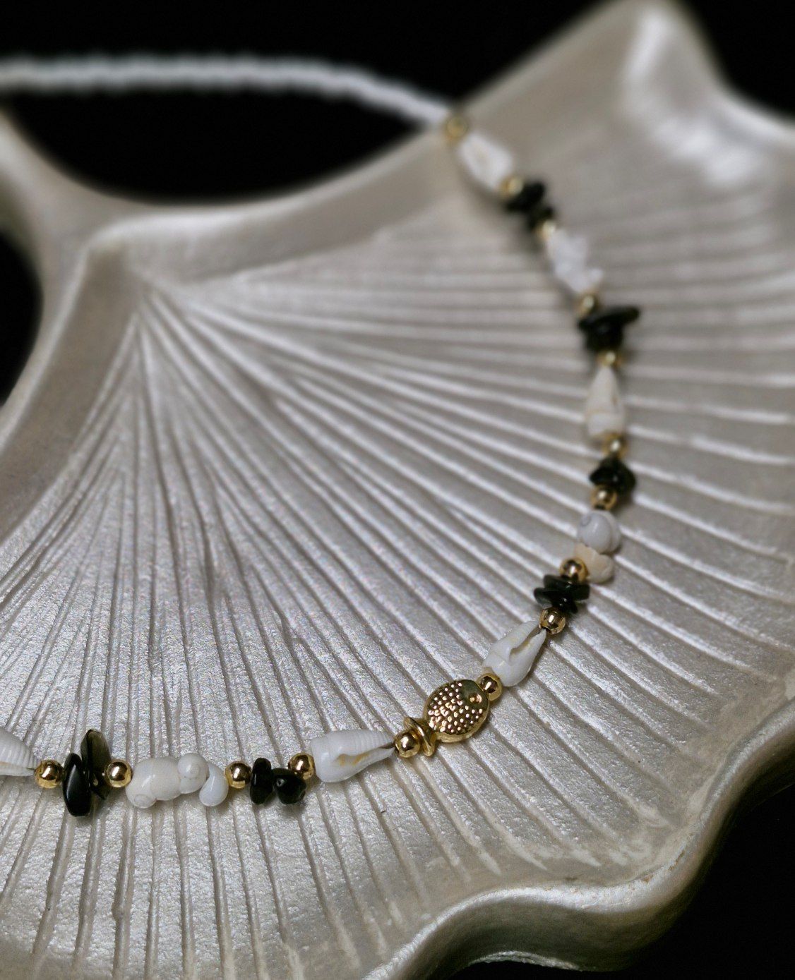 گردنبند زنانه صدف و سنگ با پلاک ماهی استیل رنگ ثابت