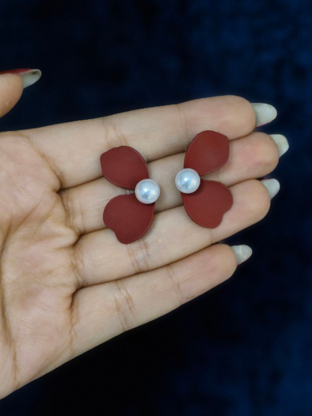 گوشواره سفالی_فانتزی طرح گل و مروارید