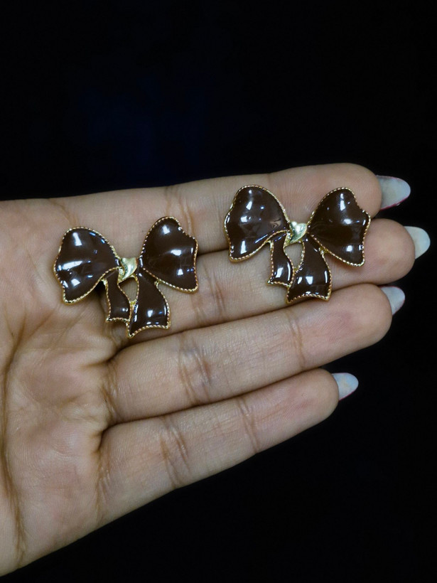 گوشواره زنانه طرح پاپیون میناکاری قهوه ای و از جنس استیل طلایی