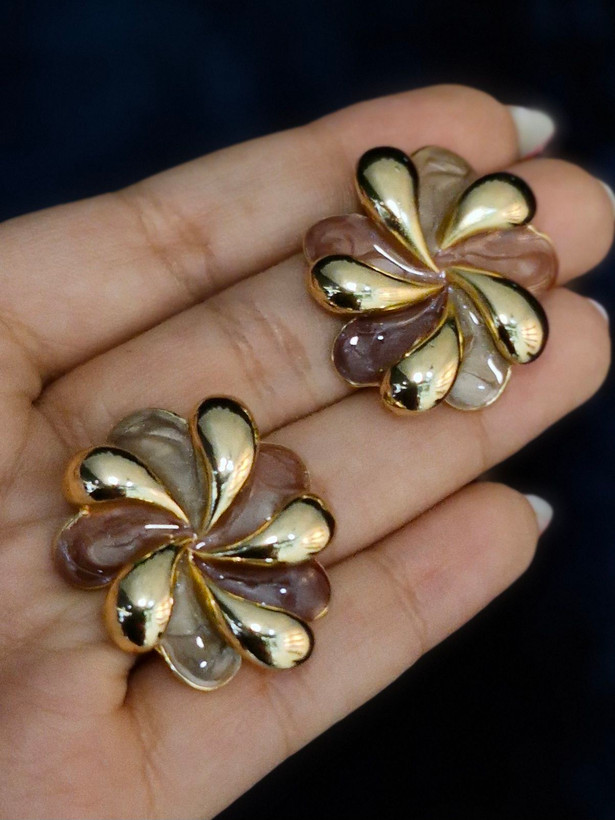 گوشواره طرح گل رزینی و از جنس استیل با آبکاری طلا