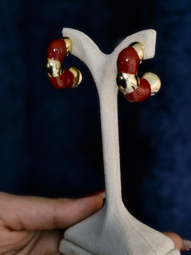 گوشواره زنانه دفرمه میناکاری_استیل که نیاز به مراقبت دارد و با شوینده و عطر در تماس نباشد