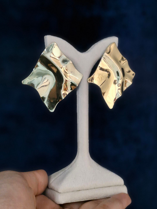 گوشواره زنانه لوزی دفرمه از جنس استیل که نیاز به مراقبت دارد و با شوینده و عطر و ادکلن در تماس نباشد