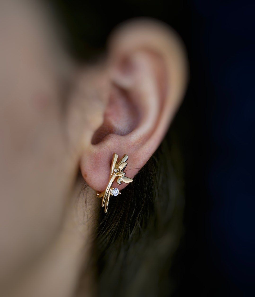 گوشواره بامبو و پروانه نگین کاری شده از برند ژوپینگ با قفل چفتی و طول 2.5cm رنگ ثابت و ضد حساسیت، اختلاف در اندازه گیری تا ۲،۳ میلی متر امکان پذیر است.