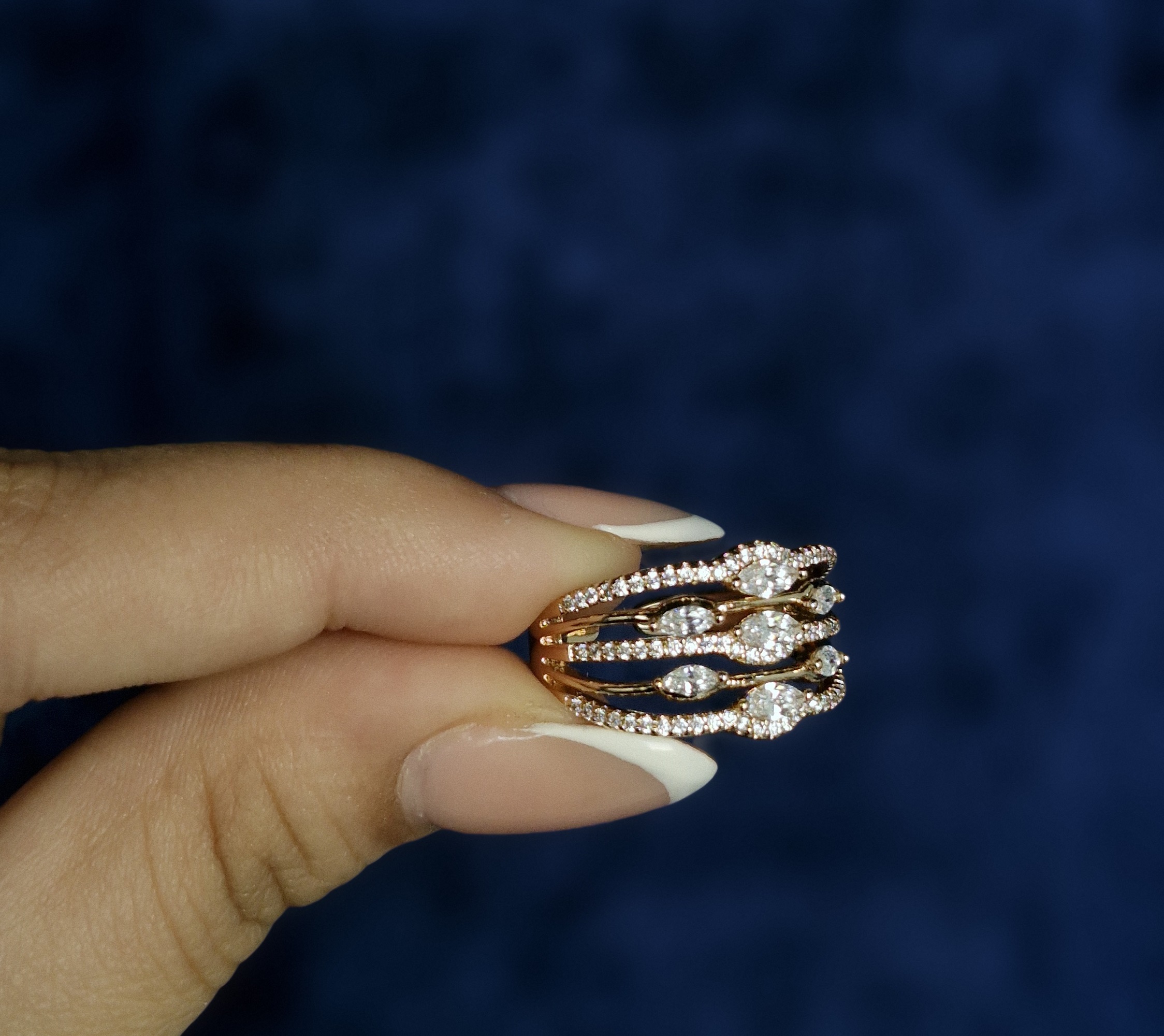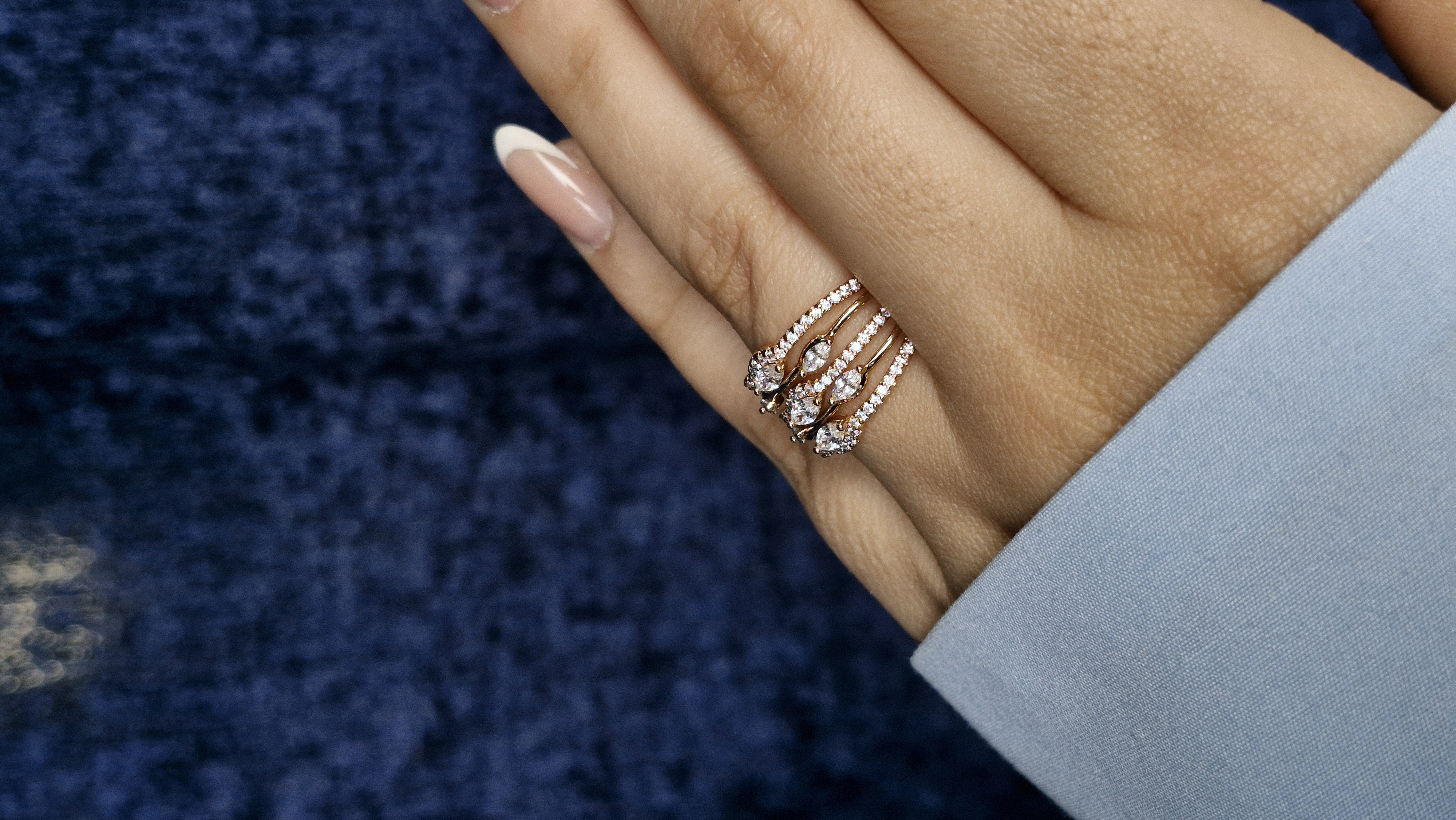 انگشتر زنانه طرح نگین اشکی (نگین کاری شده) از برند ژوپینگ ، رنگ ثابت و ضد حساسیت، دارای ۴ سایز استاندارد