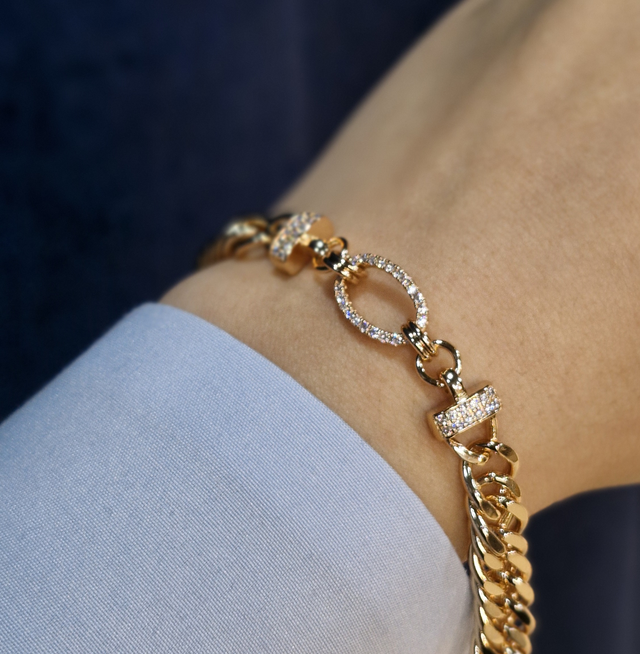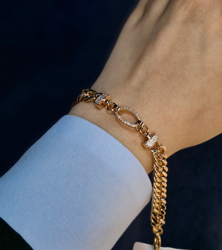 دستبند زنانه کارتیه طرح بیضی نگین کاری شده از برند ژوپینگ ، رنگ ثابت و ضد حساسیت ، طول دستبند همراه با قفل 21cm ، قفل طوطی، اختلاف در اندازه گیره تا 2،3 میلی متر امکان پذیر است