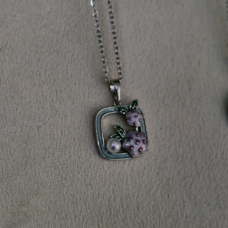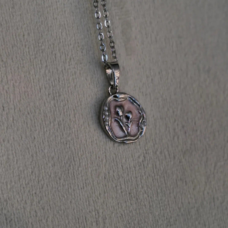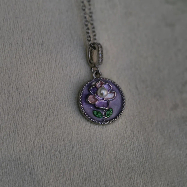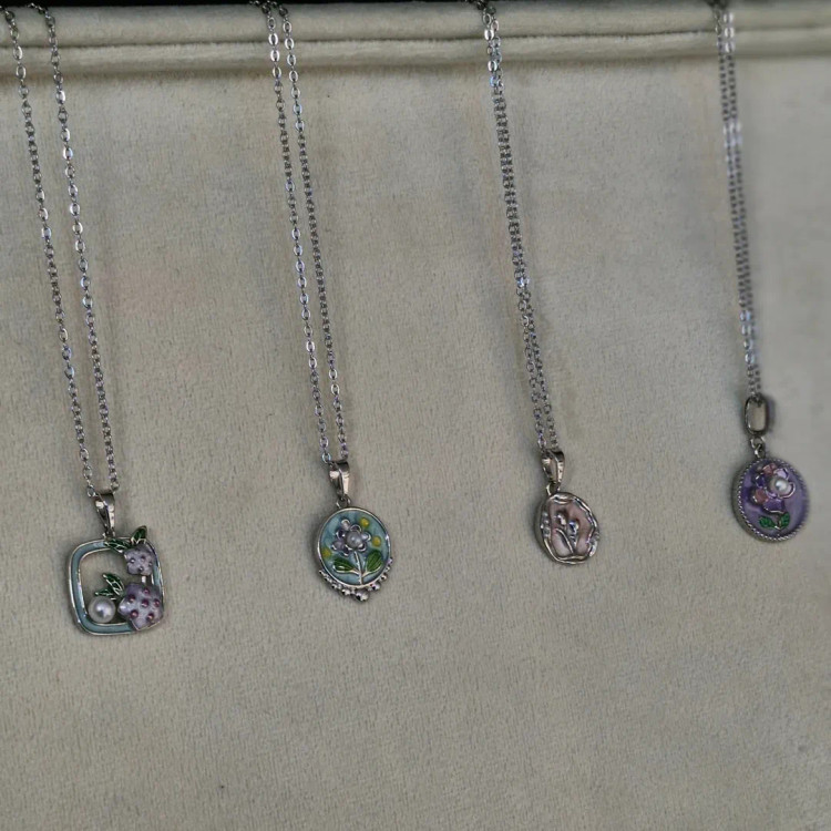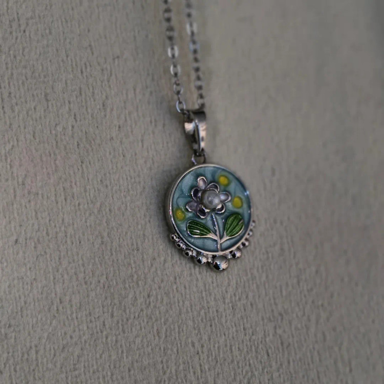 گردنبند مینا کاری همراه با زنجیر جنس استیل، مراقبتی - با شوینده در تماس نباشد. ترکیبی از مینا کاری و مروارید