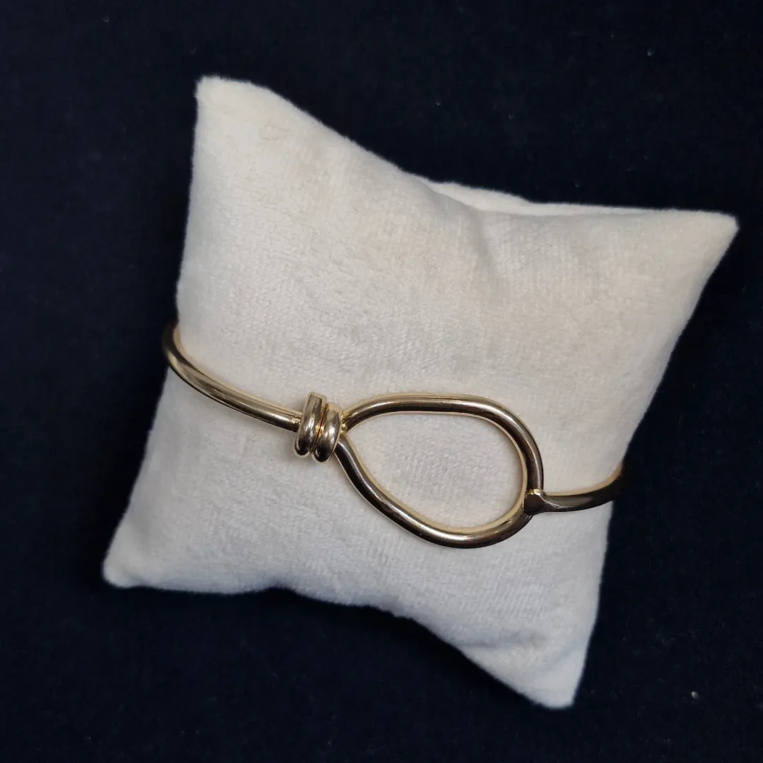 بنگل طلایی طرح اشک استیل مراقبتی. با شوینده در تماس نباشد. فری سایز و قابل تنظیم. اندازه بنگل 16 سانتی متر